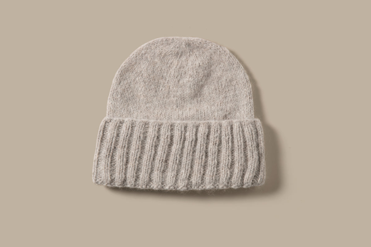 This handknit beany is a real classic. Easy to wear, always the right shape and windproof thanks to the fine fleece headband inside. Soft and pleasantly warm. Baby alpaca. One size