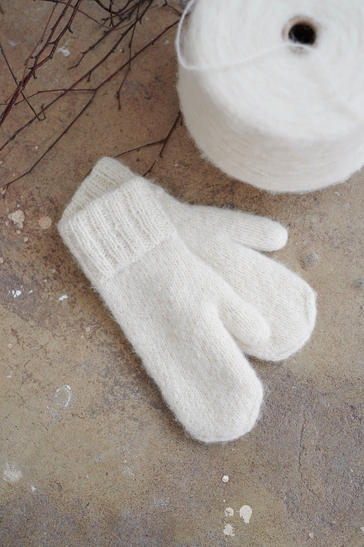 These mittens can't be missed on a chilly autumn or winter walk or ride with the bike. This duo is windproof thanks to a very fine, soft fleece inside. Baby alpaca. Handknitted.        One size.