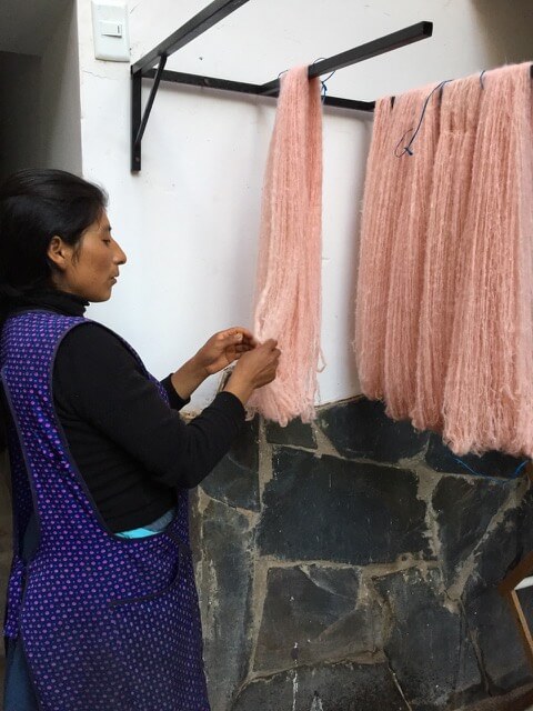 Hug & Hum uses 100% baby alpaca from Peru. That is also where all the spinning and knitting is done. We work together with a knitwear atelier located in Peru, that employs local, socially vulnerable women, allowing them to earn a fair income to support themselves and their families. Recently, we started a similar collaboration with a social enterprise that produces all- natural botanically dyed yarns, in small batches by the skilled hands of local women artisans. They use plants they find in the mountains to dye the alpaca yarns in new, exclusive colours for Hug & Hum. By working together with social enterprises we want to bring warmth and softness not only to the people who wear the collection, but also to those who make it.